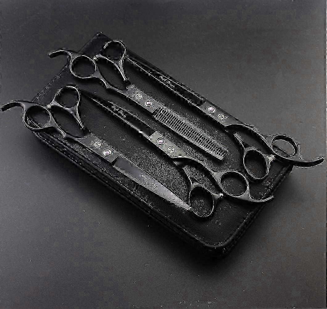 Purple Dragon Professional 7.0 inch 4PCS Pet Grooming Scissors Kit Japan Premium Steel Straight & Curved & Thinning Blade Dog Hair Cutting Shears