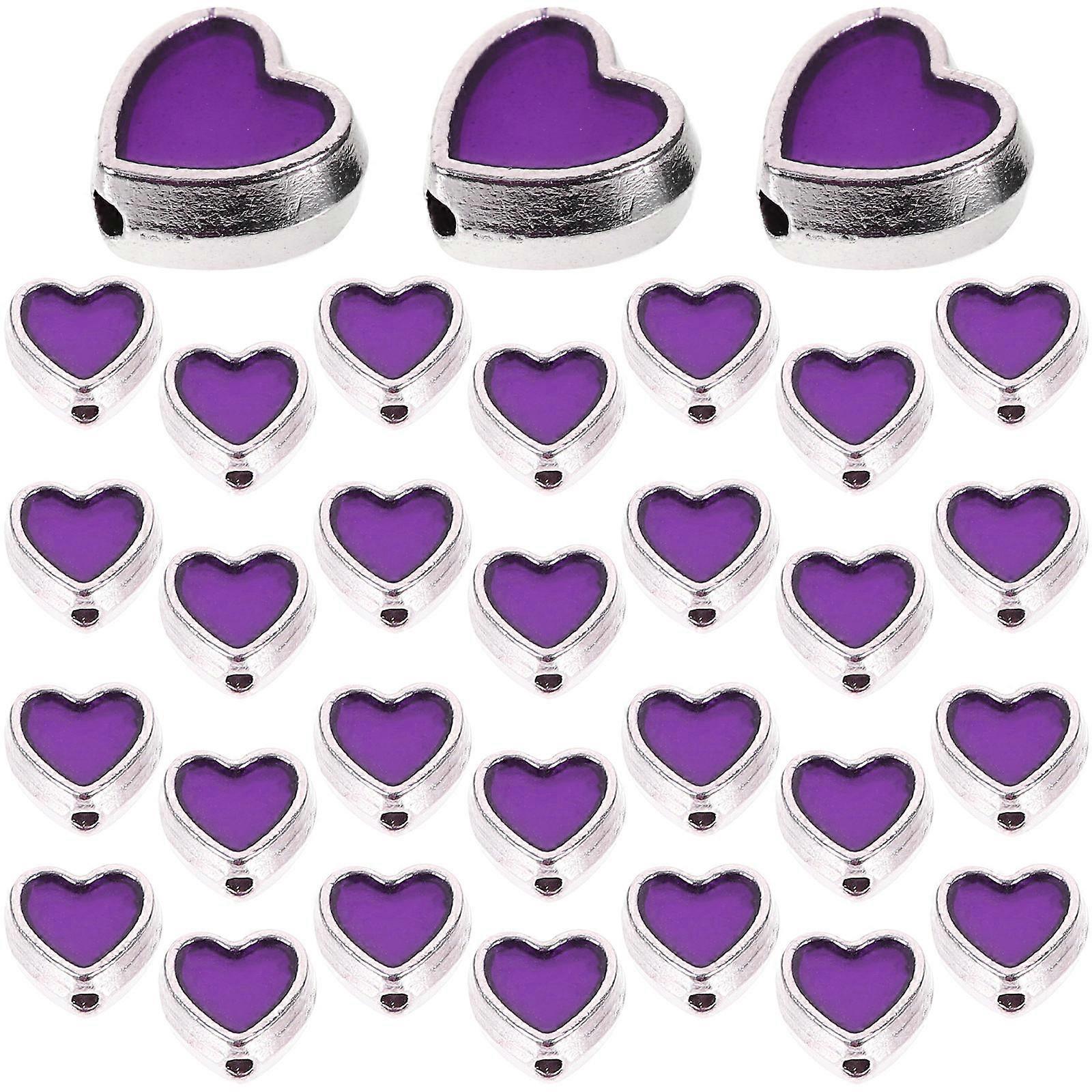 Purple Heart Alloy Spacer Beads 100pcs Smooth DIY Jewelry Craft Supplies for Bracelets, Necklaces, Earrings, and Accessories