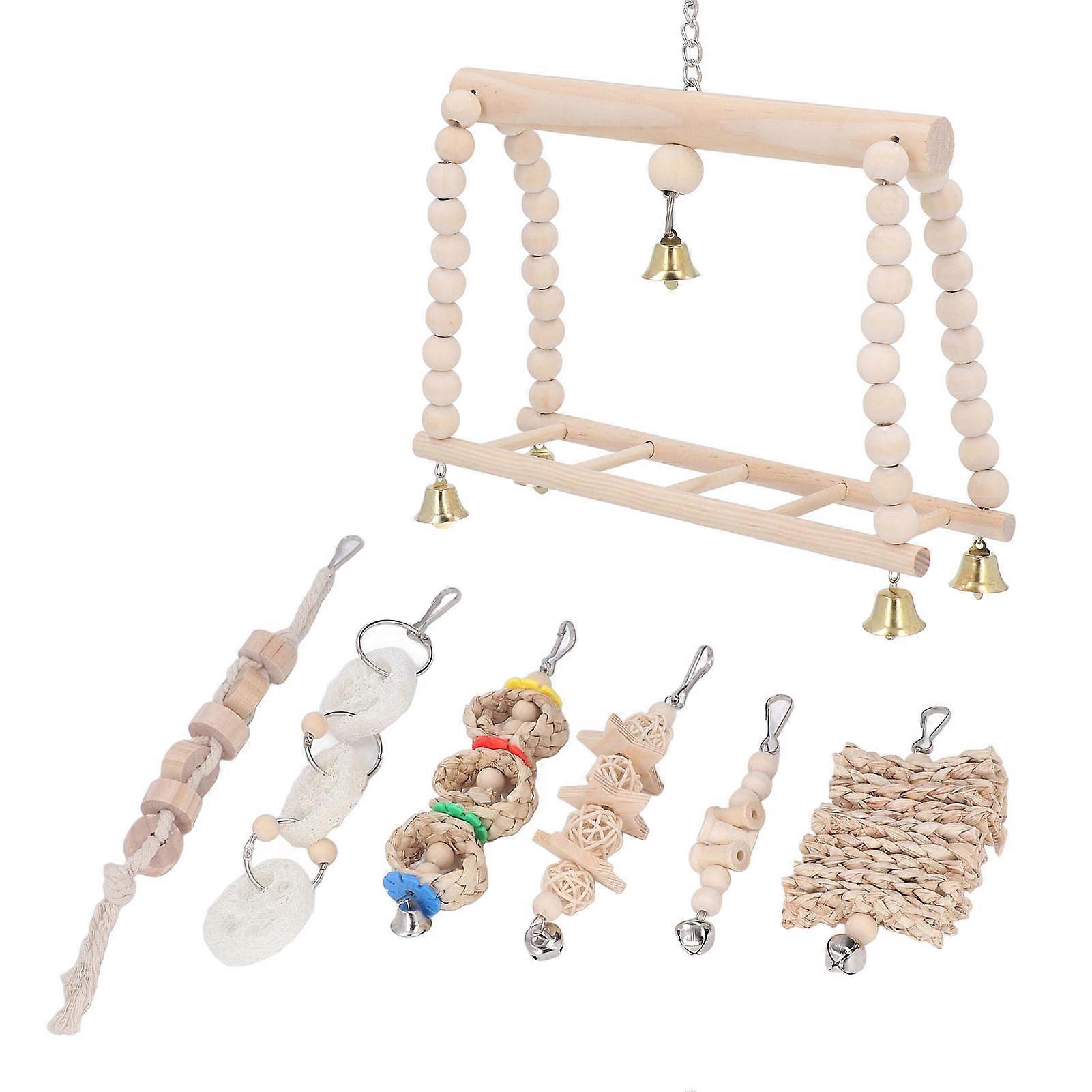 Bird Swing Chewing Toys Hanging Bell Pinewood Climbing Ladder Birdcage Accessories Toys for Cockatiels Conures Finches