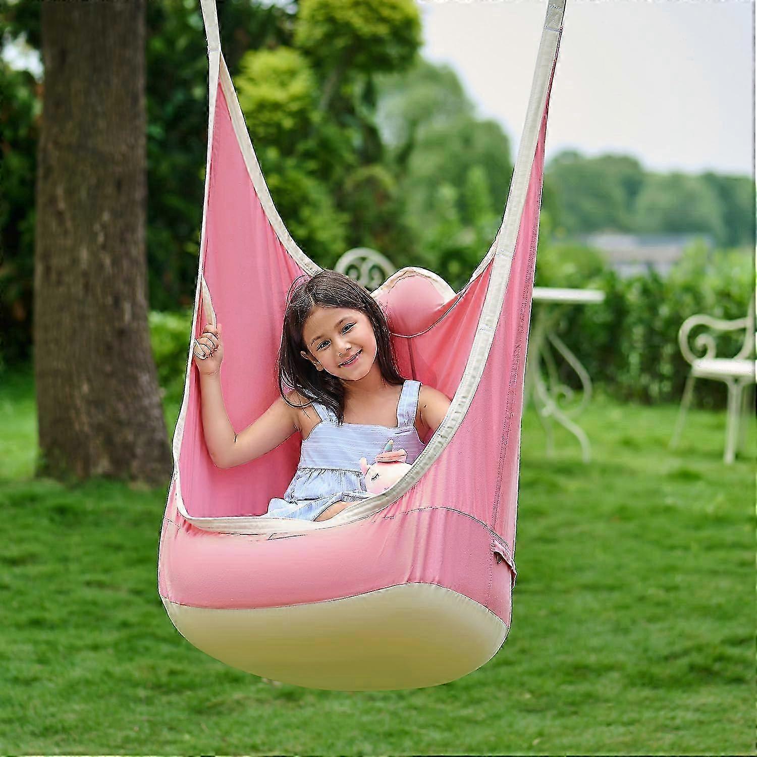 Upgraded Kids Pod Swing, Hanging Pod Swing Chair with Inflatable Cushion,Indoor and Outdoor, Sensory Pod Swing for Kids (Two Straps, Pink)
