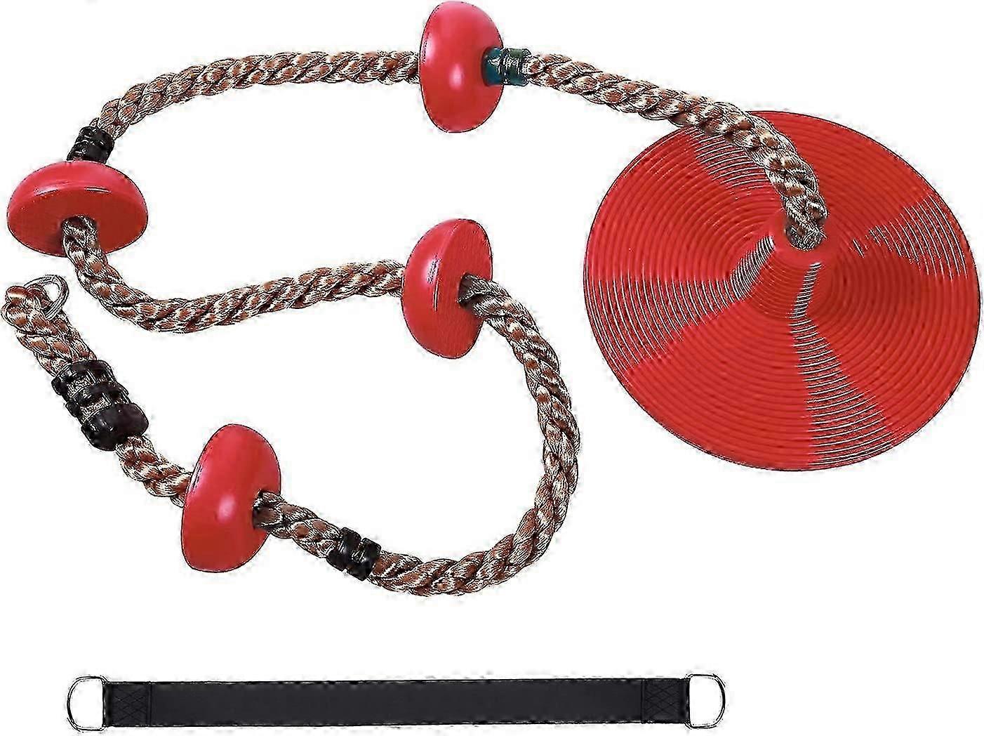 Heavy Duty Outdoor Climbing Rope Swing with Plastic Disc Seat in Red Color