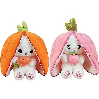 Bunny Stuffed Animal Reversible Cuddle Bunny Stuffed,Strawberry Bunny Transformed Rabbit Plush Zipper,Carrot That Turns Into Ears Bunnies Plushies Toy