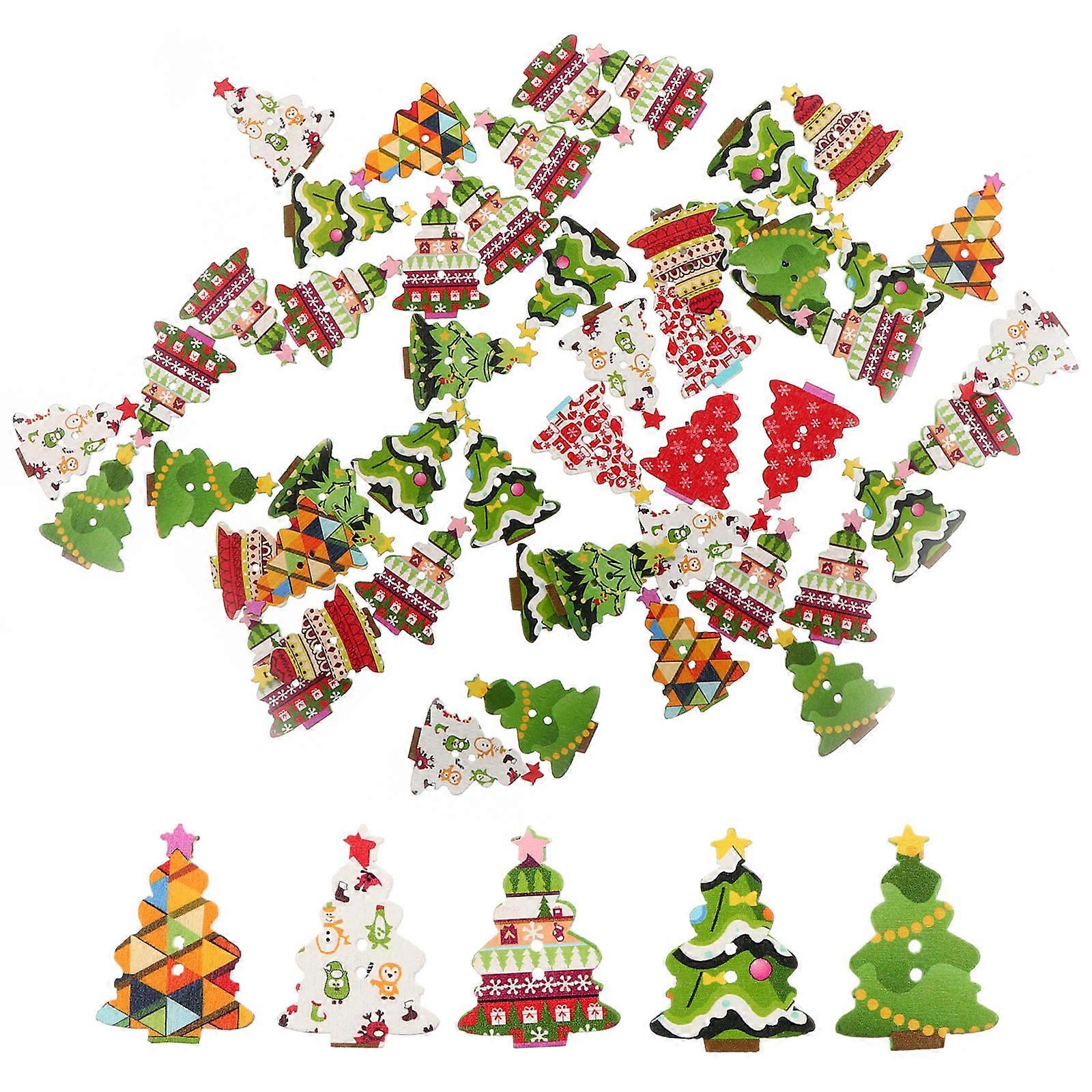 Christmas Wooden Buttons Durable Natural Wood Ornaments with Cute Xmas Patterns for DIY Sewing, Crafts, Art Projects, and Clothing Accessories