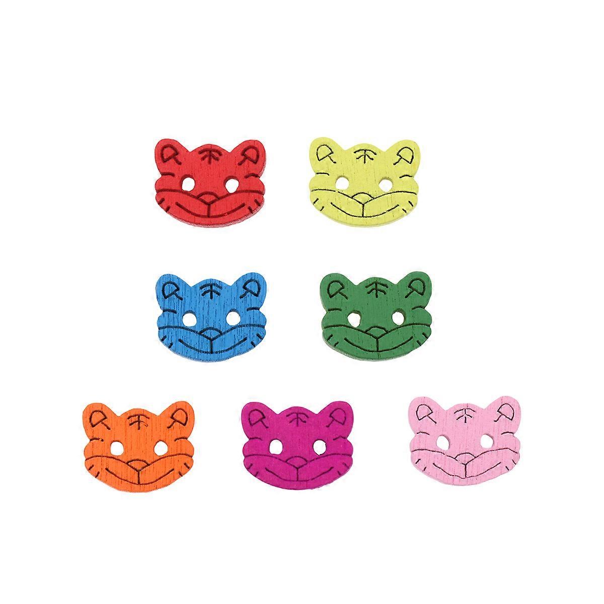 Decorative Buttons Tiger Head Wooden Two Holes For Crafts Embellishments Assorted Color 1.3x1x0.3cm 100Pcs