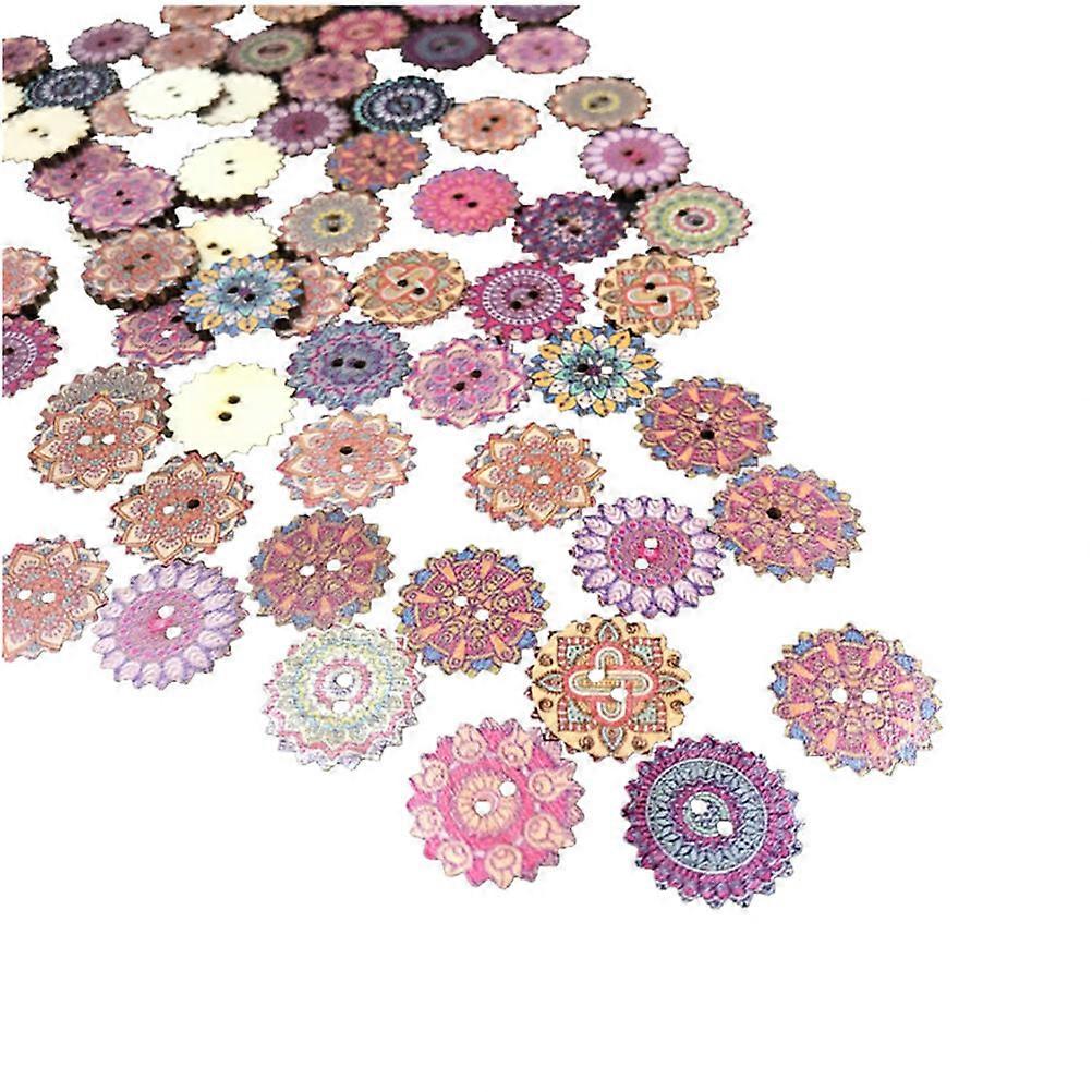 Gear Buttons Vintage Wood Two Holes Mixed Color Flower Design Sewing Scrapbooking Crafts 100Pcs