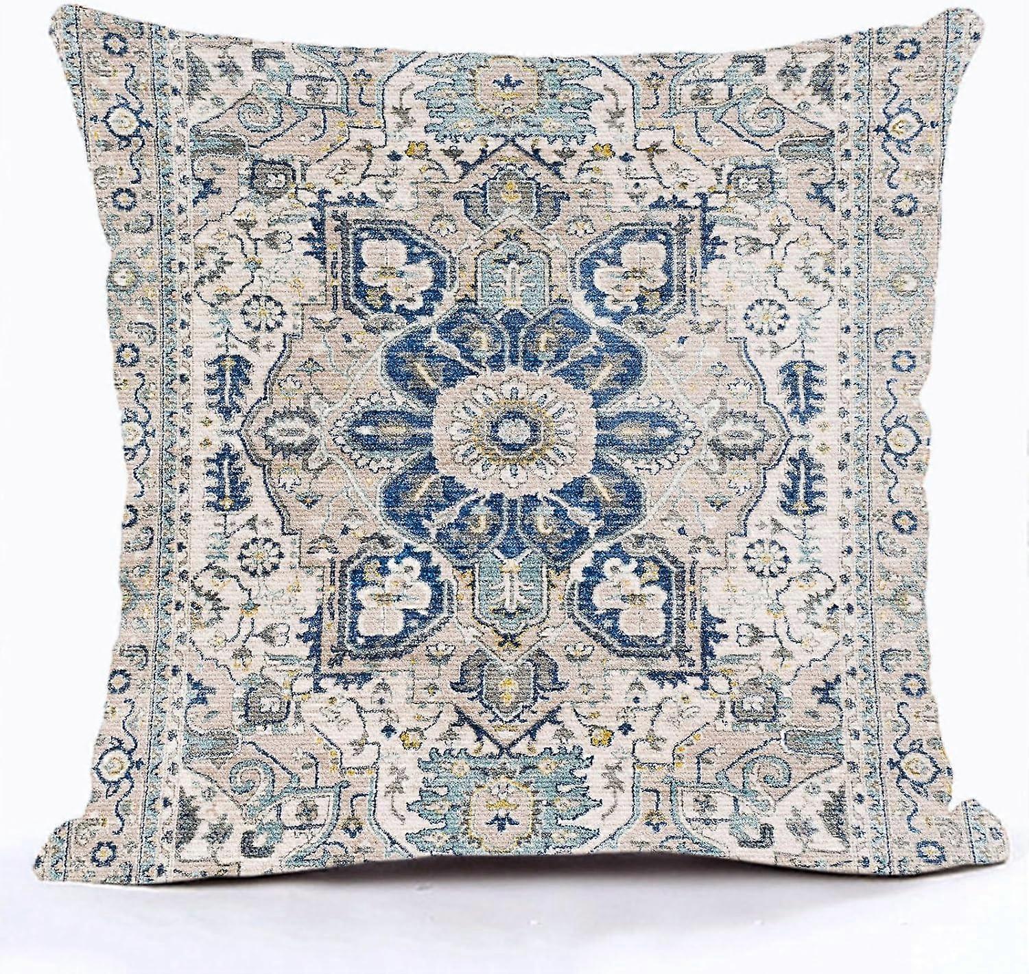 Blue Boho Style Throw Pillow Cover Ethnic Design Pattern Linen Persian Carpet Tribal Pattern Throw Pillow Case 20x20 inch Cushion Cover Home Office De