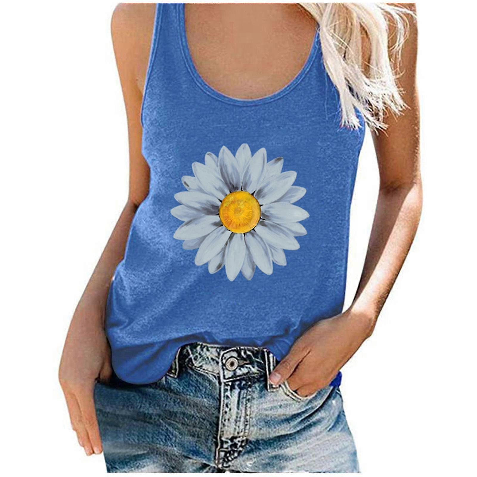 Women Fashion O-neck Sleeveless Printing Casual Blouse Tunics Shirts Tops Tee