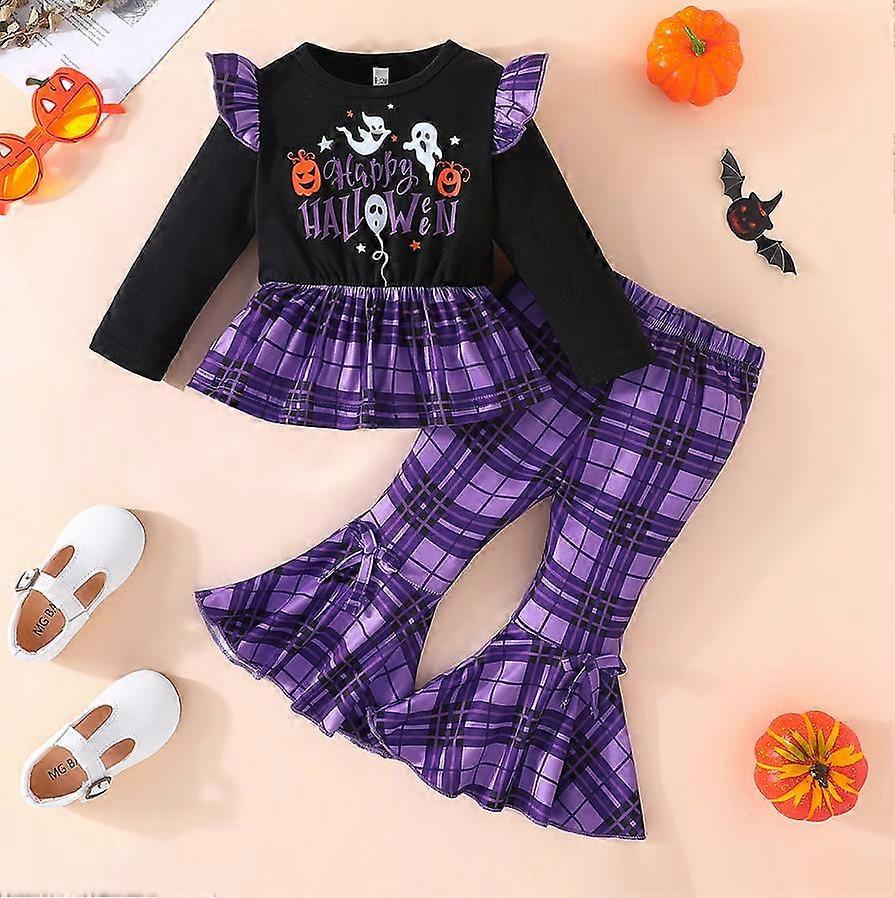Fashion Kids Girls Halloween Clothes Set Black Round Collar Pullover T shirt Leggings Yarn Skirt Baby's Sets Halloween Costume