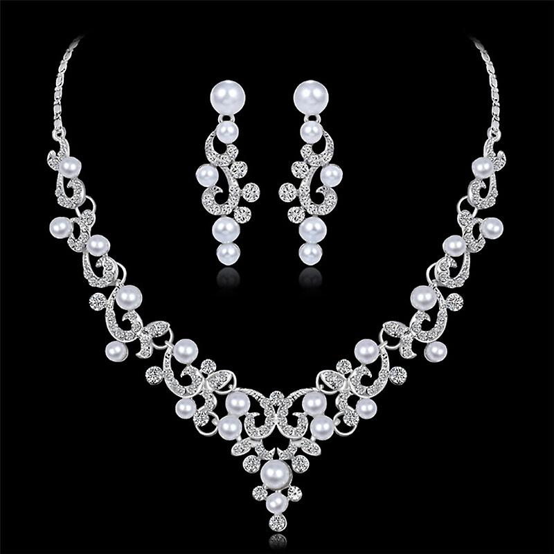 Fashion Rhinestone Faux Pearl Necklace Earrings Women Bride Jewelry Set Hot Gift