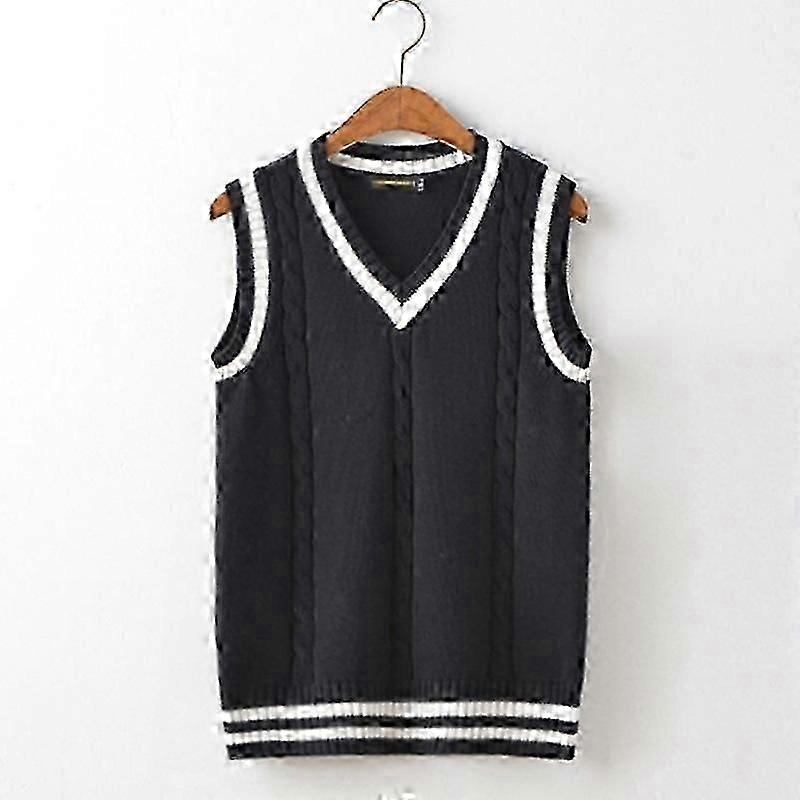 Mens Fashion Thick V-Neck Sleeveless Vest Sleeveless Sweater Cotton School Uniform Cotton Loose Knitting Vest Sweater Winter Clothing for Men