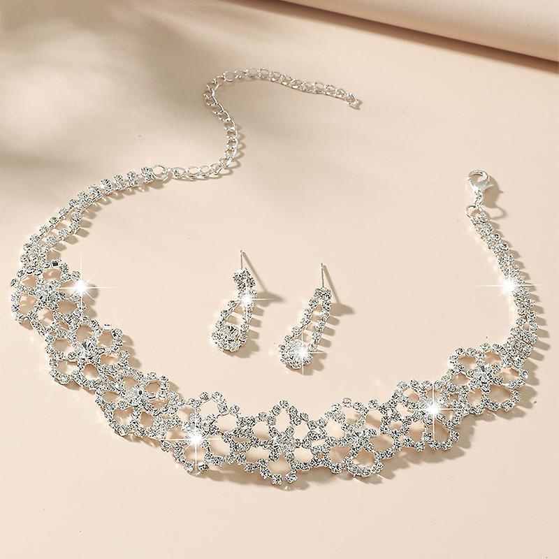 Fashion Crystal Bride Jewelry Set Rhinestone Silver-plated Necklace Earrings Set