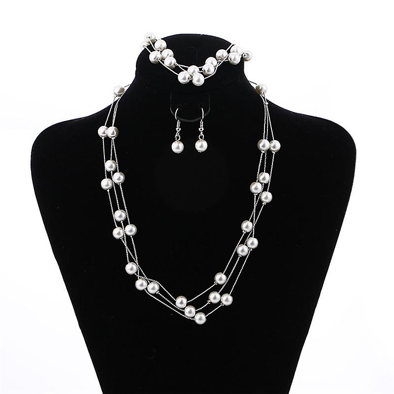 Fashion Multilayer Pearl Necklace Earrings Bracelet Jewelry Set Wedding Bridal