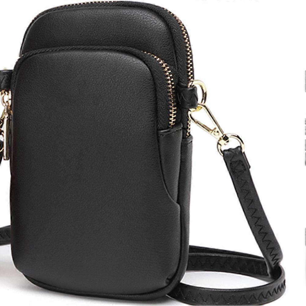 Fashion PU Women Solid Color Mini Phone Wallet Stylish Zipper One Shoulder Bag (Black)