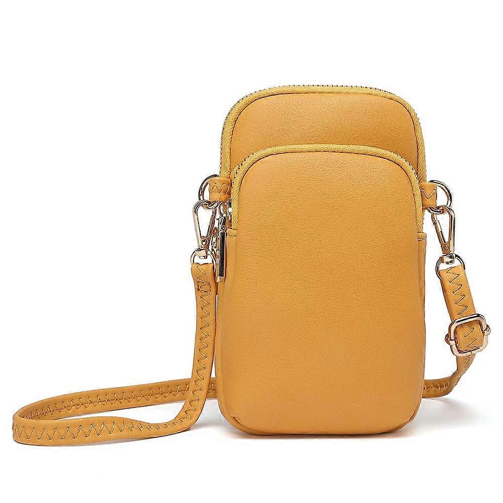 Fashion PU Women Solid Color Mini Phone Wallet Stylish Zipper One Shoulder Bag (Yellow)