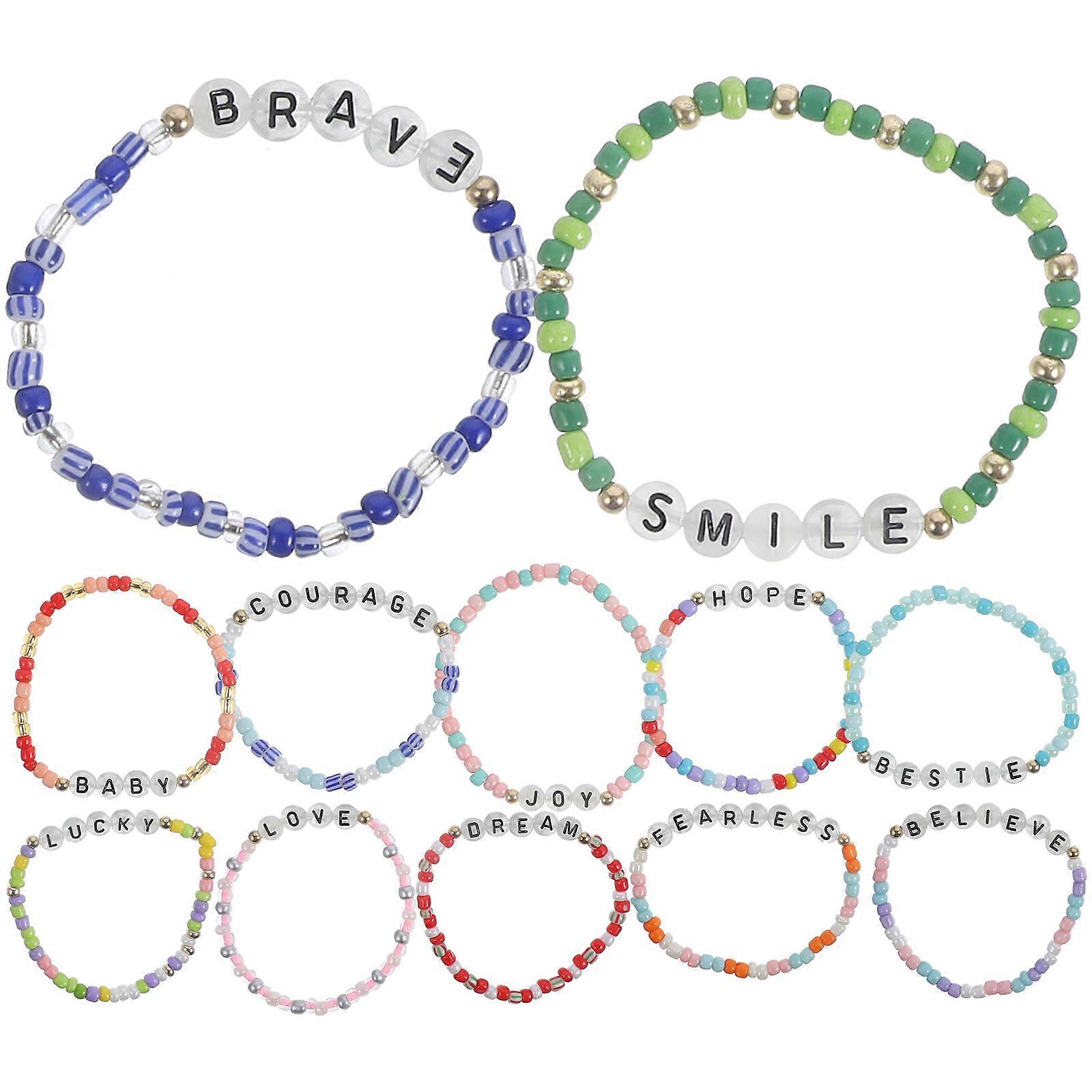 Beaded Bracelets for Girls with Glow in the Dark Letters Decorative Acrylic Wristbands Assorted