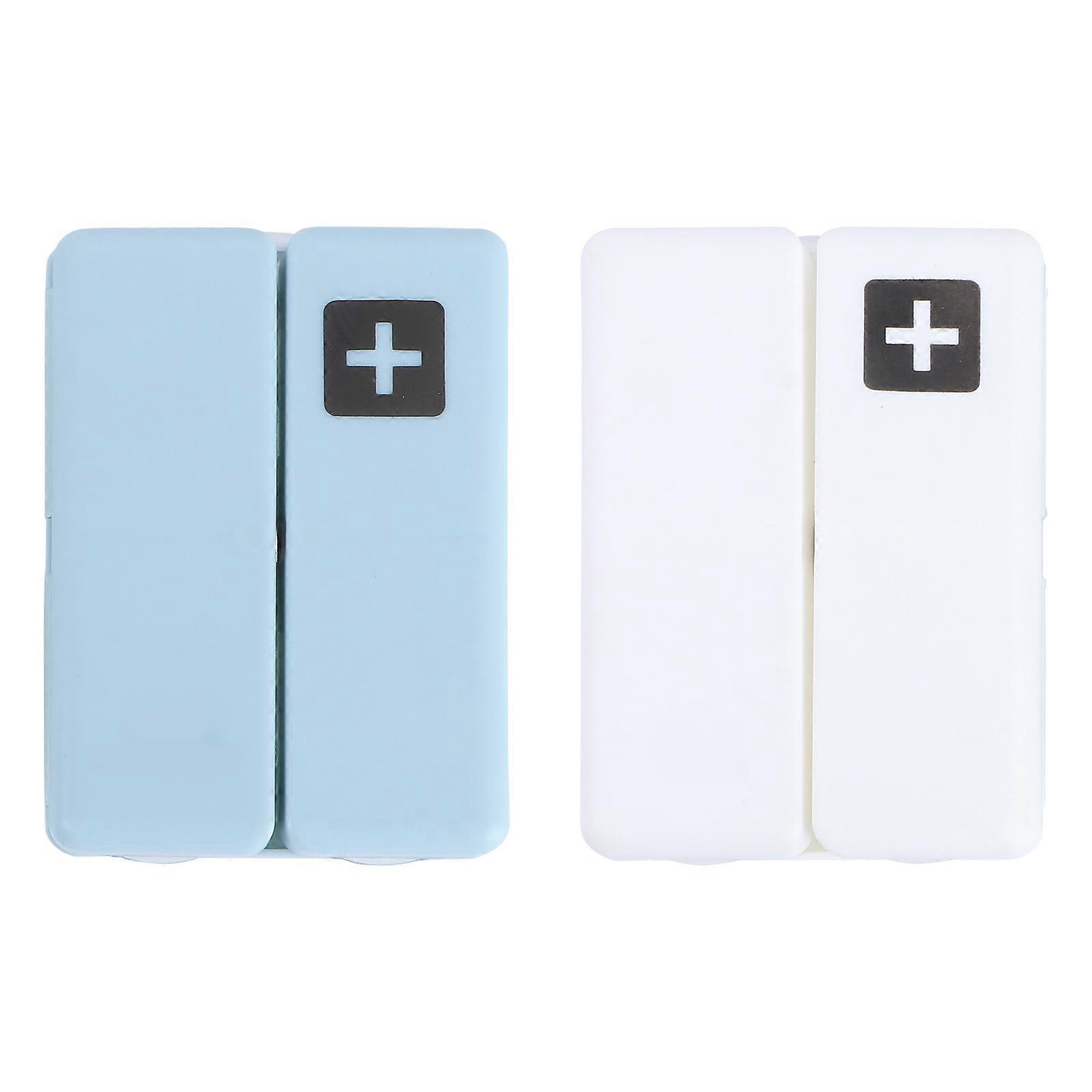 Week Pill Organizer Multi Compartment Storage Box Travel Daily Use Blue Plastic 2Pcs