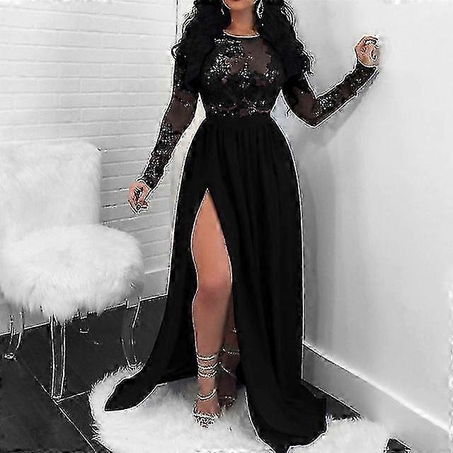 Black Sequin Evening Gown Long Sleeve Formal Dress for Women's Party