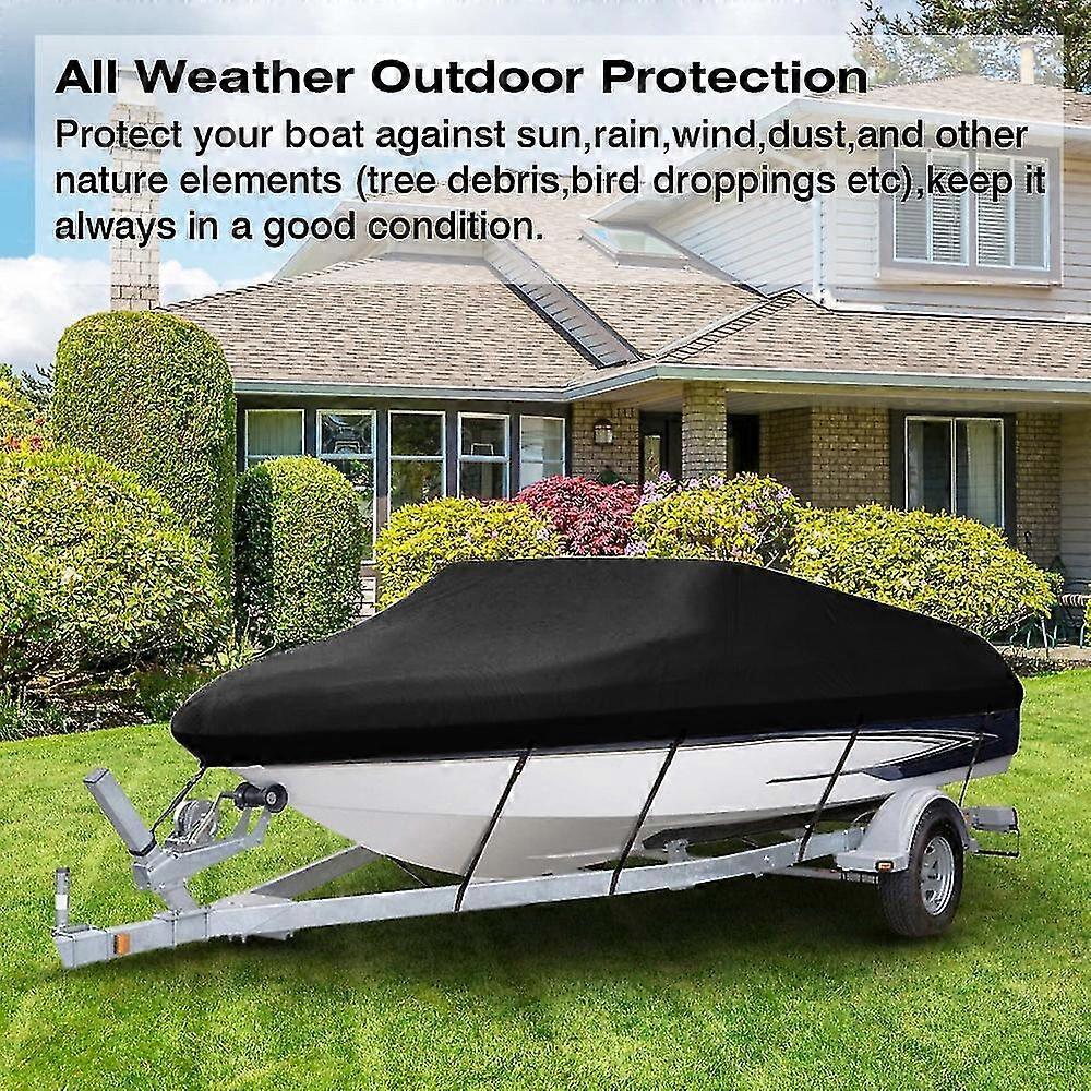 Black Heavy Duty 210d Marine Grade Waterproof Boat Cover Fit V-hull Tri-hull Runabout