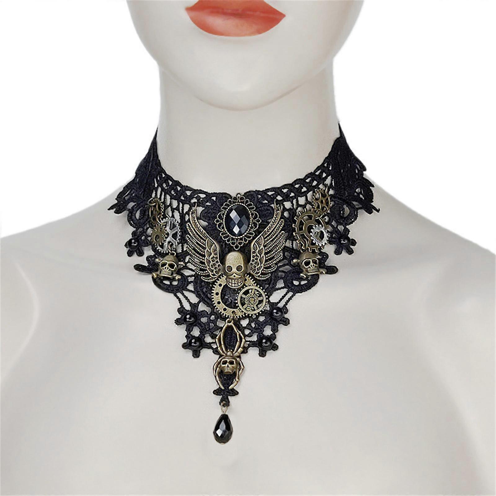 Black Lace Choker Gothic Necklace Choker for Halloween Party Formal Date Dress up Gothic Punk Style Dark Collar Gold