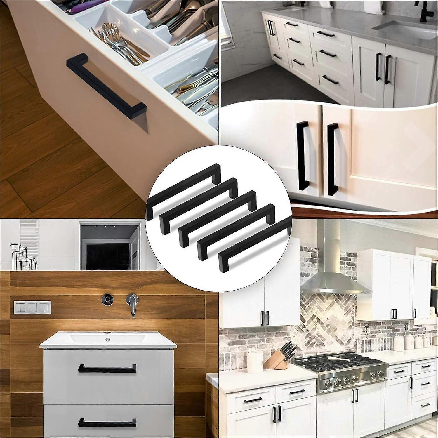 Black Kitchen Cabinet Pull Handles Screws Included, Square Stainless Steel Furniture Pull Handles Fo