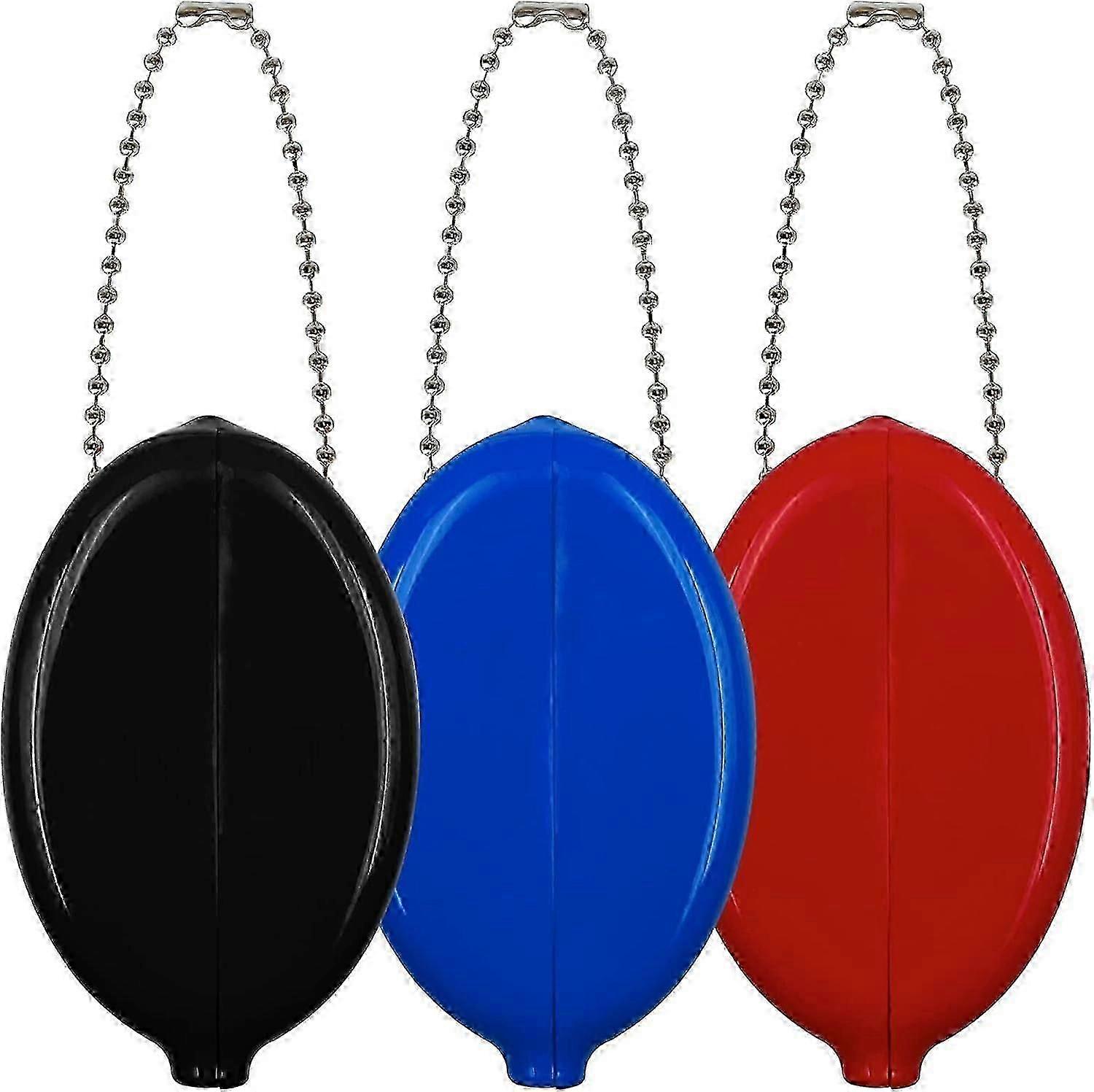 Black Blu eRed 3 Pieces Rubber Coin Purse, Oval Squeeze Coin Holders With Chain for Women Men Travel