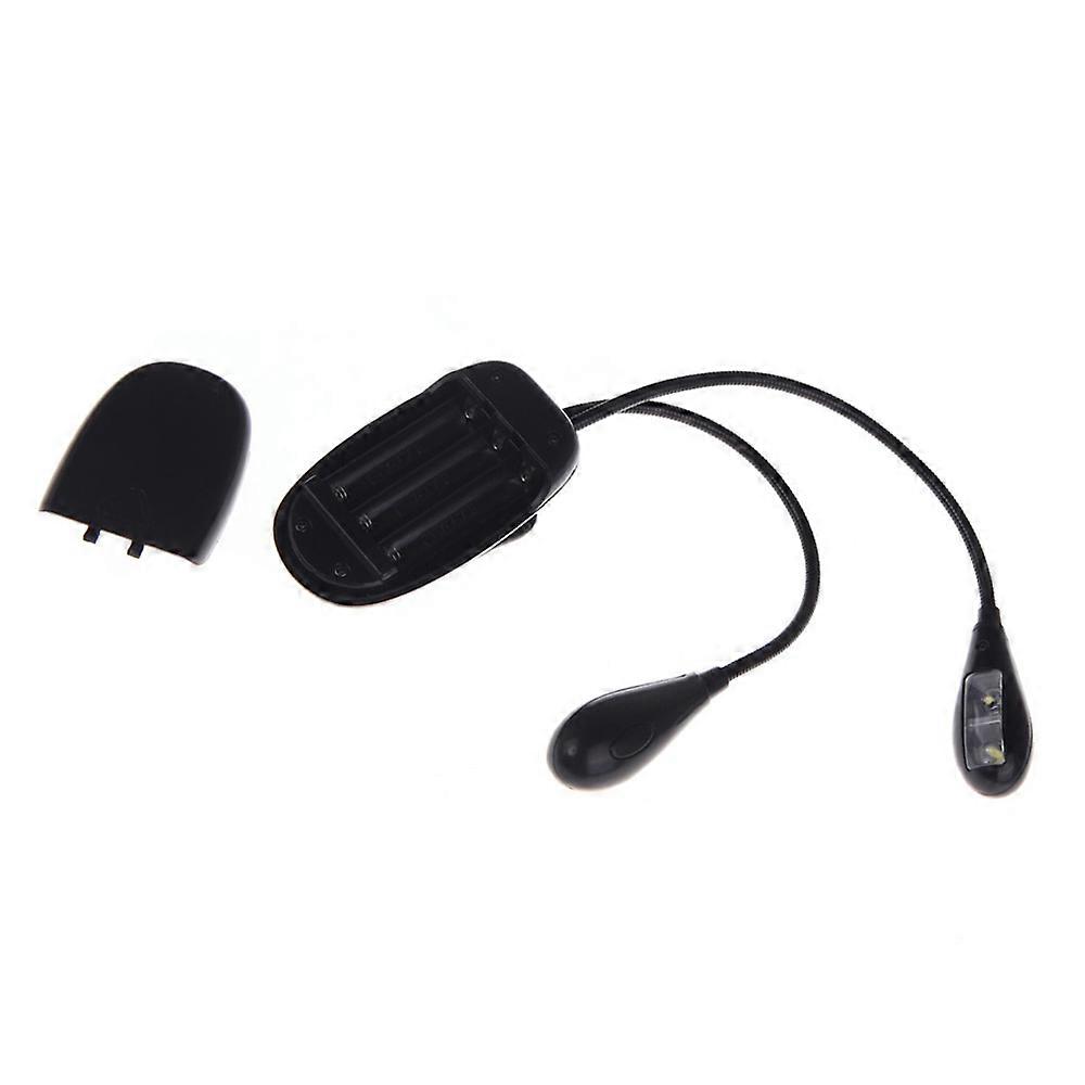 Black Clip-on 2 Dual Arms 4 LED Flexible Book Music Stand Light Lamp