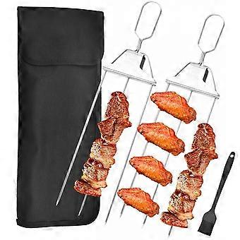 3 Way Grill Skewers, Skewers for Kabobs, 3-Prong BBQ Skewer, BBQ Grilling Skewers for Outdoor, Easy to Use Push Bar Slider, Stainless Steel Grill Skew
