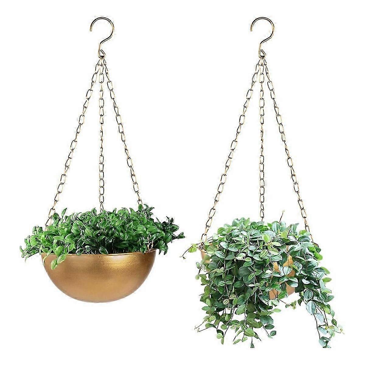 [STRONG AND DURABLE] This plant Pot is made of iron. Frosted surface, delicate, wear-resistant, easy to clean.(Planter not included)[Unique Drainage Hole Design] The planter pots are with drainage holes and plug. After watering plants, cover the drainage hole with the stopper, so it won't drip and could be hanged up in any places.[GREAT MODERN LOOK FOR PLANT] This metal flower pot is suitable for growing flowers, succulents, hydroponics, etc. And it is the perfect way to light up your Mid Century Modern, Boho, Farmhouse or whatever style room/kitchen/office.[WIDELY USED] This oval black planter is a convenient space saver, which is widely used in patio, porch, balcony or near the window, adding a touch of greenery to your space. For friends who move, renovate the house, or change the office. It is really a gift of ingenuity.Colour:GoldMaterial:ironPackage Contents:2 * Large Gold Hanging PlanterOnly the above package content, other products are not included.Note: Light reflection and different displays may cause the color of the item in the picture a little different from the real thing. The measurement allowed error is +/- 1-3cm.
