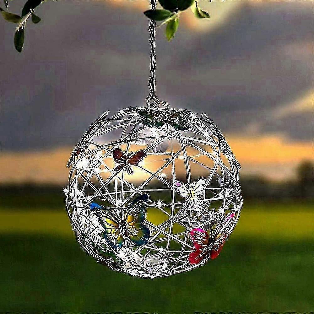 Solar Lights Outdoor, Colorful Butterfly Garden Lights, Garden Hanging Round Ball Light, Waterproof Weaving Lamp Decorative Night Lights