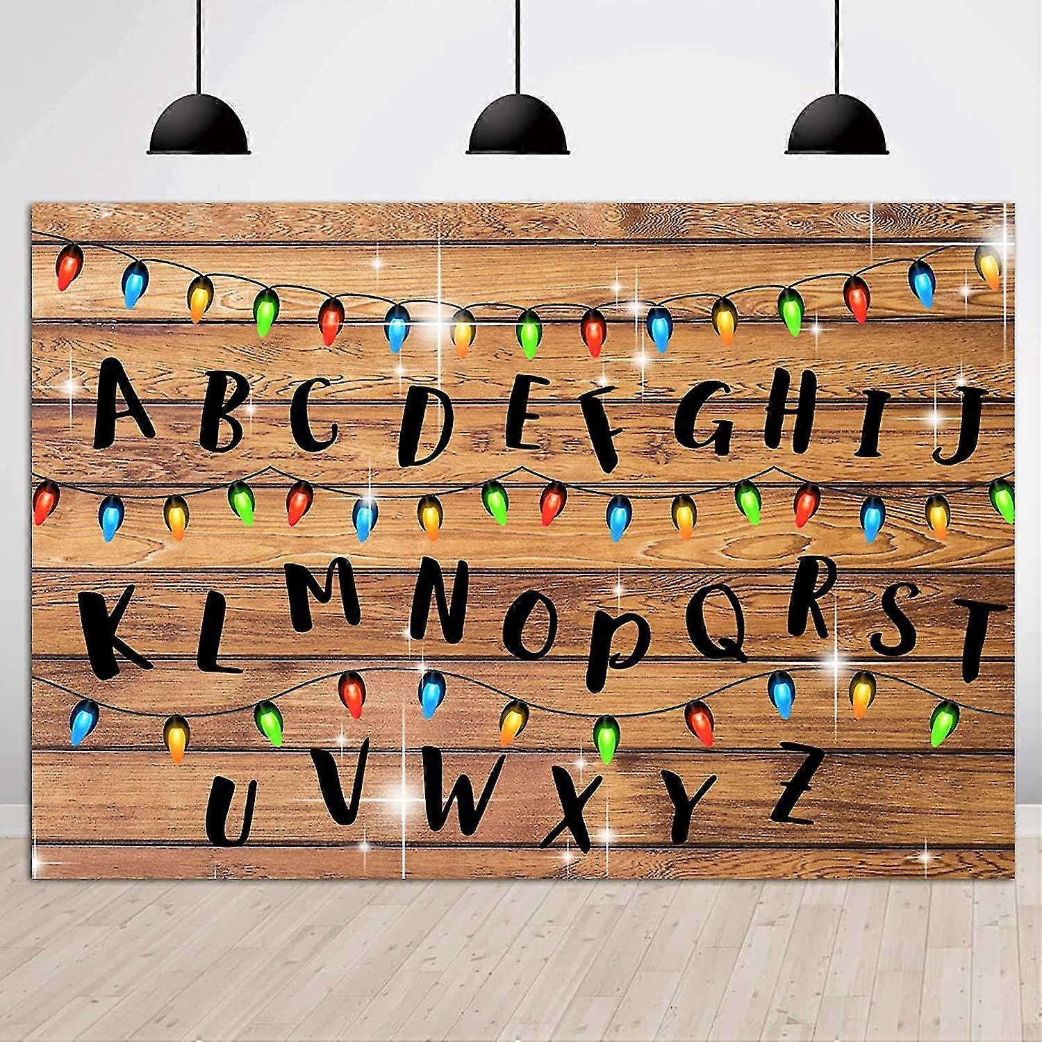 Christmas Lights Alphabet Photography Background Rustic Wooden Stranger Backdrop For Birthday Party Supplies Photo Shoot Booth Props Vinyl 5x3ft