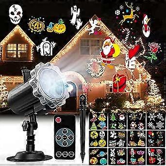 Christmas Decorative Lights Outdoor Indoor,Remote Control LED Christmas Projector Light with 12 Slides Upgraded Projection Light Moving Rotating Lands