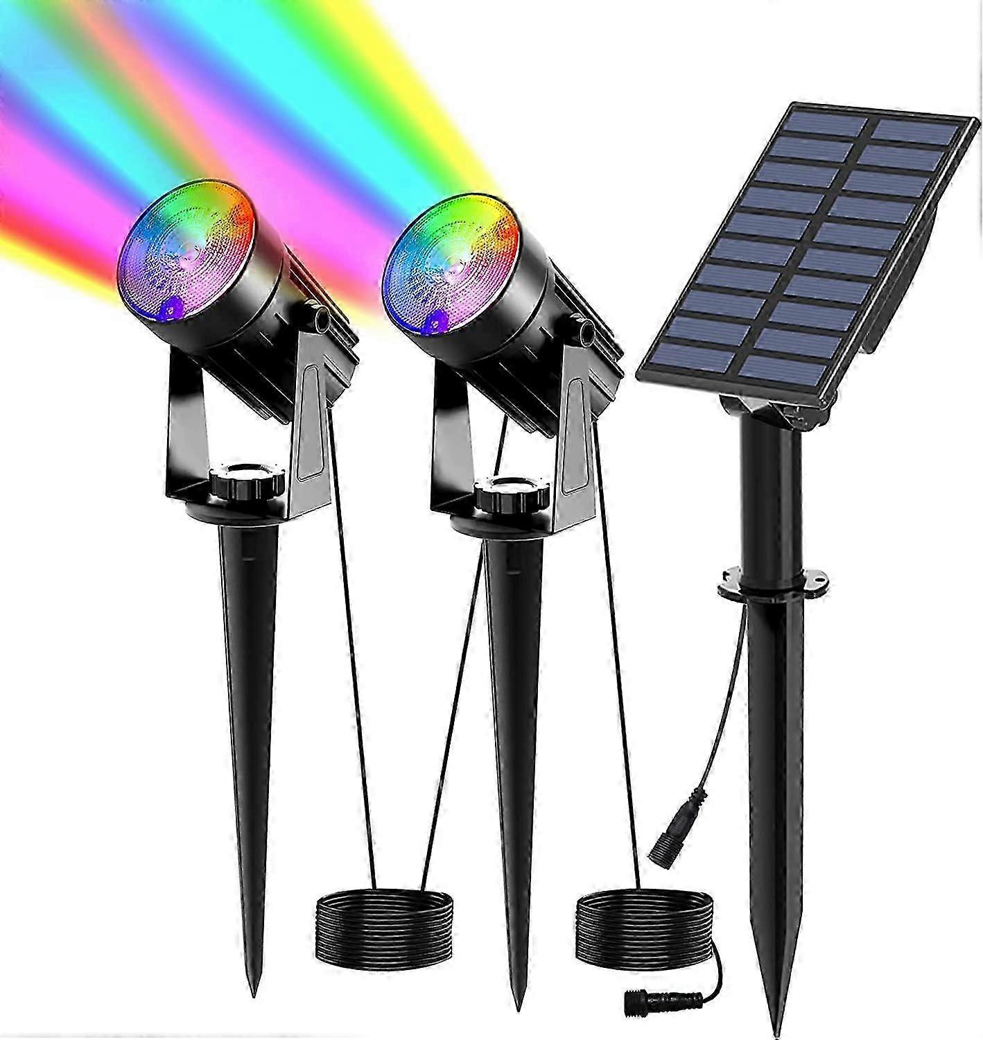 Outdoor Solar Spotlight, T-Sun 2-In-1 Waterproof Solar Garden Light, Solar Spotlight With 2 Lighting Modes Color Changing Solar Landscape Light For Ga