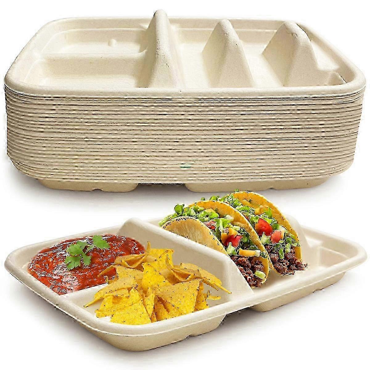 Disposable Taco Plates for 2 Tacos & 2 Sides - 25 PACK with Dividers, Fiesta Taco Holder, Taco Stan