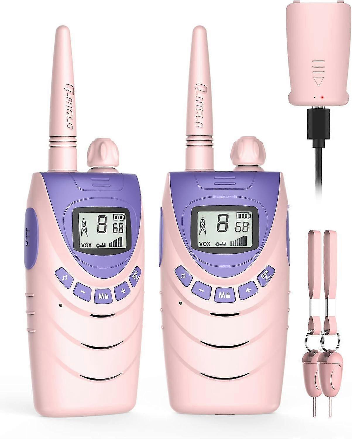 Product Dimensions:2.2 x 1.1 x 3.9 inches Item Weight:3.03 ounces Batteries:2 Lithium Polymer batteries required. (included) Special features:Long Range Other display features:Wireless Mult Colors Available Walkie Talkies RechargeableOur walkie-talkie has a built-in rechargeable Li-ion battery and comes with USB cables, you may charge it by PC, power bank, or car charger. Greatly reduce the trouble of the changing batteries cost. Overcharge protection, safe charging. Easy to UseSimply press the push-to-talk button of the kid walkie talkie rechargeable, then you could talk with your kids or family members. There are 22 FRS channels & 99 codes, so you could set your own channel to keep your kids away from unfamiliar sounds. It's easy to operate for boys and girls ages 3 4 5 6 7 8 and up. Clear Sound & Key LockOniglo walkie talkies for kids rechargeable come with adjustable volume levels that allow your kids' voice can be heard clearly on the other end. The kid walkie talkies 2 pack equipped with a key lock function, it can against preset settings from being accidentally altered by the children. Friendly DesignSmall and light walkie talkies comfortably fits most of the kids' hands, only 86g per walkie talkie is easy to carry outside. With a Power/Volume Knob, your kids are able to turn on/off the walkie talkies or adjust the volume level of it with ease. If you are looking for an outdoor activity to reduce your child playing smart devices, Qniglo rechargeable walkie talkies for kids would be your best gifts toys to bring your kids more fun in their childhood. Perfect Gifts for KidsOur rechargeable walkie talkies for kids are great for 3-12 years old girls, boys, or family members Christmas/Birthday Holiday Gifts. With its light body and multi-colored design, the kids walkie talkies are comfortable to carry for kids outdoor activities such as spring outing, summer camping, hiking. Walkie Talkies RechargeableOur walkie-talkie has a built-in rechargeable Li-ion battery and comes with USB cables, you may charge it by PC, power bank, or car charger. Greatly reduce the trouble of the changing batteries cost. Overcharge protection, safe charging. Easy to UseSimply press the push-to-talk button of the kid walkie talkie rechargeable, then you could talk with your kids or family members. There are 22 FRS channels & 99 codes, so you could set your own channel to keep your kids away from unfamiliar sounds. It's easy to operate for boys and girls ages 3 4 5 6 7 8 and up. Clear Sound & Key LockOniglo walkie talkies for kids rechargeable come with adjustable volume levels that allow your kids' voice can be heard clearly on the other end. The kid walkie talkies 2 pack equipped with a key lock function, it can against preset settings from being accidentally altered by the children. Friendly DesignSmall and light walkie talkies comfortably fits most of the kids' hands, only 86g per walkie talkie is easy to carry outside. With a Power/Volume Knob, your kids are able to turn on/off the walkie talkies or adjust the volume level of it with ease. If you are looking for an outdoor activity to reduce your child playing smart devices, Qniglo rechargeable walkie talkies for kids would be your best gifts toys to bring your kids more fun in their childhood. Perfect Gifts for KidsOur rechargeable walkie talkies for kids are great for 3-12 years old girls, boys, or family members Christmas/Birthday Holiday Gifts. With its light body and multi-colored design, the kids walkie talkies are comfortable to carry for kids outdoor activities such as spring outing, summer camping, hiking.Products from LUOLV's store
