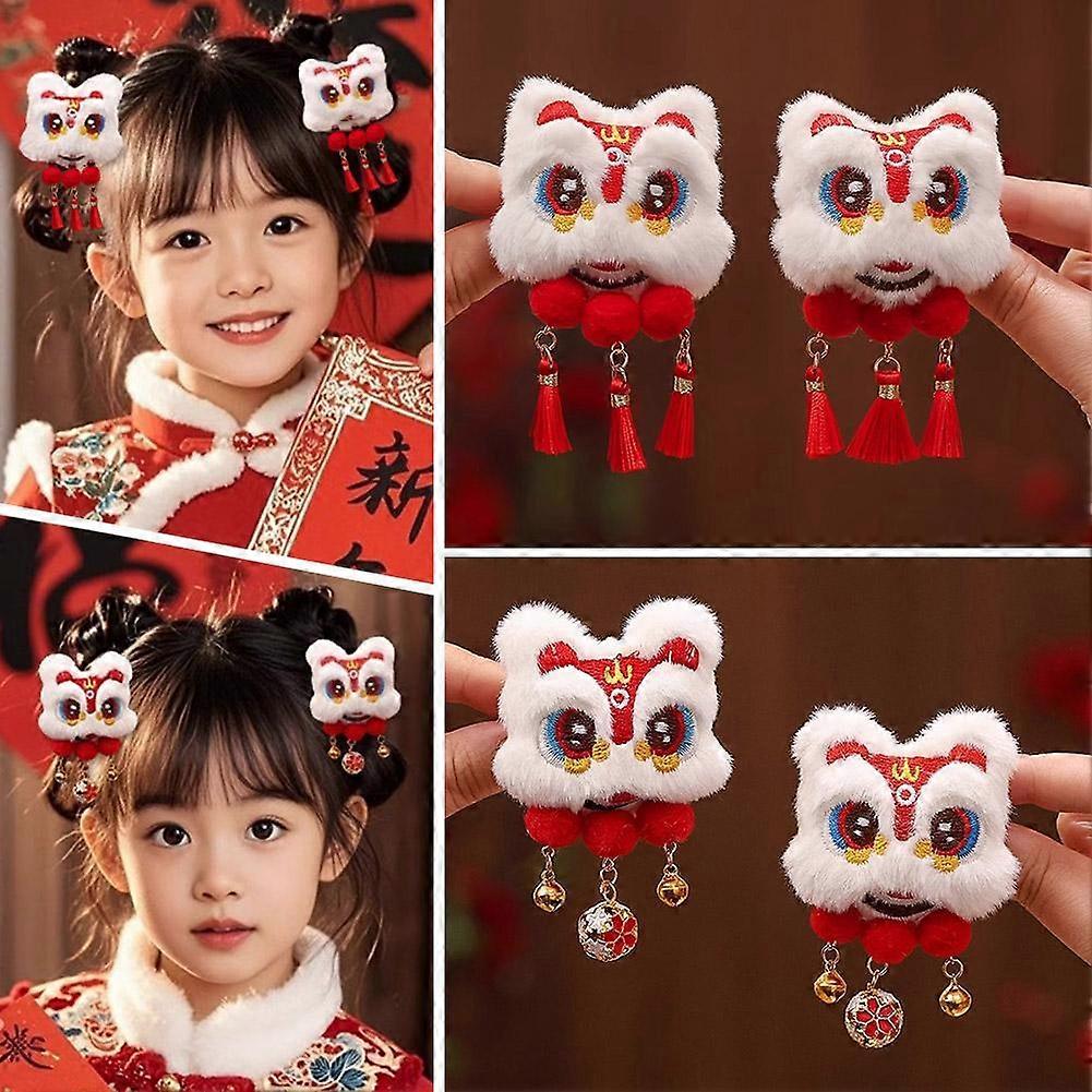 Kids New Year Hair Accessories Plush Embroidered Lion Dance Clips Girl Chinese