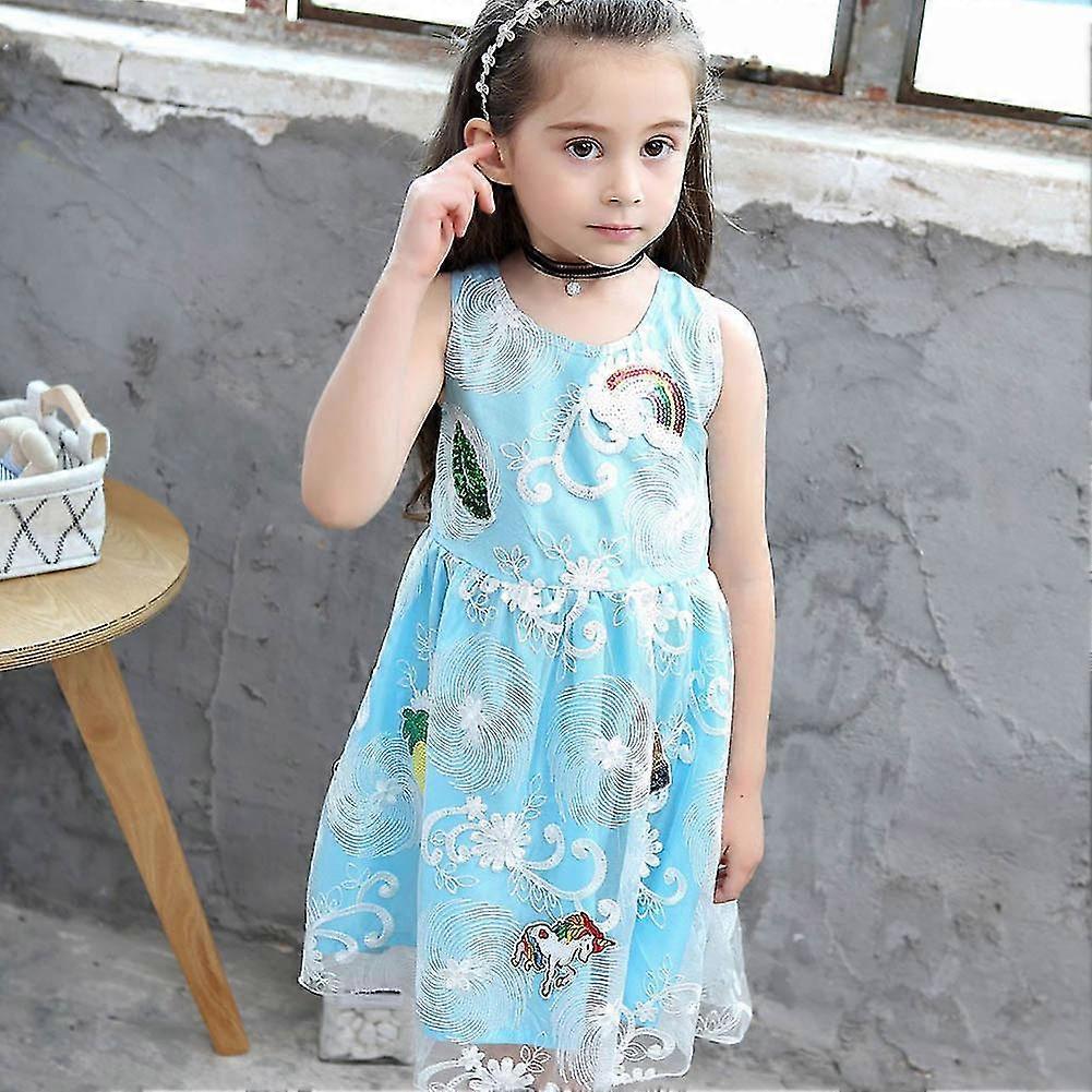 Kids Girls Lace Dress Round Neck Sleeveless Princess Dress For Summer