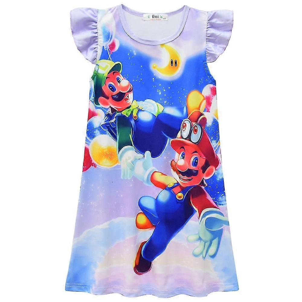 Kids Girls Crew Neck Nightgowns Super Mario Printed Nightdress Summer Nightie Dress Pajamas For Little Girls