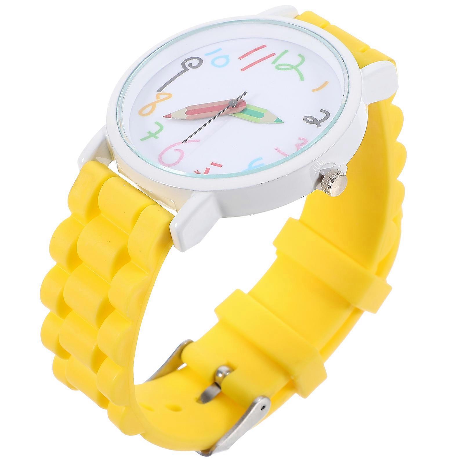 Kids Cartoon Quartz Watch Yellow Stainless Steel and Silicone Durable Safe for Kids Use