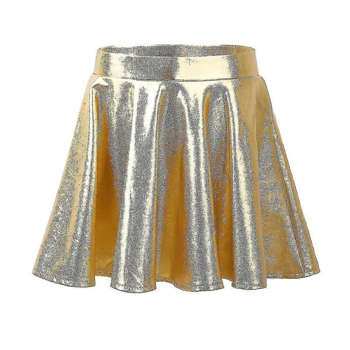 Kids Girls Glossy Metallic Flared Pleated A-Line Mini Skater Skort Dance Skirts Athletic Shiny Scoot