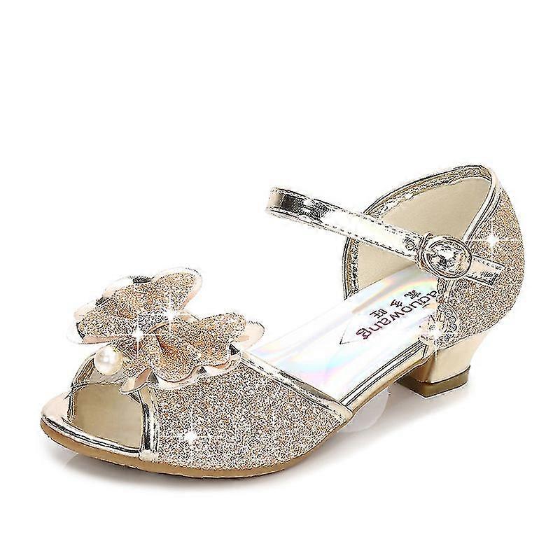 Kids Leather For Girls Princess Glitter Children High Heel Girls Butterfly Knot