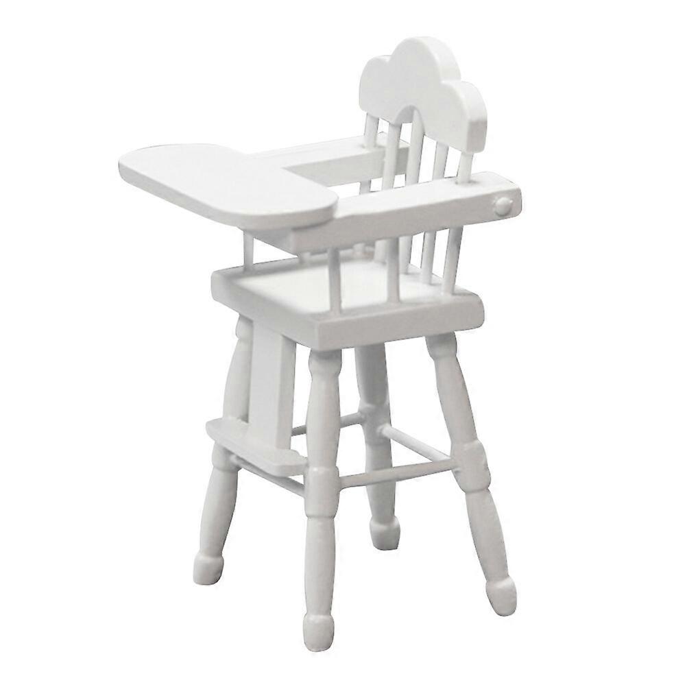 Kids Mini High Chair Toys Adjustable Table Seat Mold Toddler Feeding Highchair Decorative Furniture Model Play House Toy White Baby Dining Chair (1:12