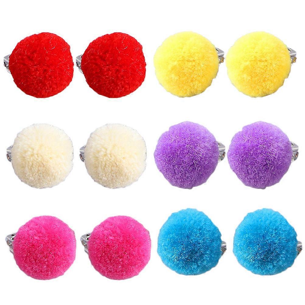 Kids Hair Clips Pom Pom Ear Stud Clip Earrings Jewelry Ornaments Birthday Parties White 6 Pairs