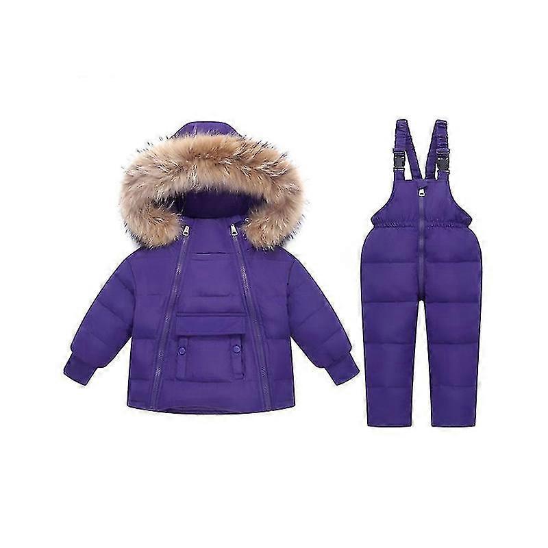 Kids 2-piece Toddler Baby Boys Girls Winter Wear Down Jacket Ski Jacket Snow Bib Pants Ski Suit, 2-5 Years