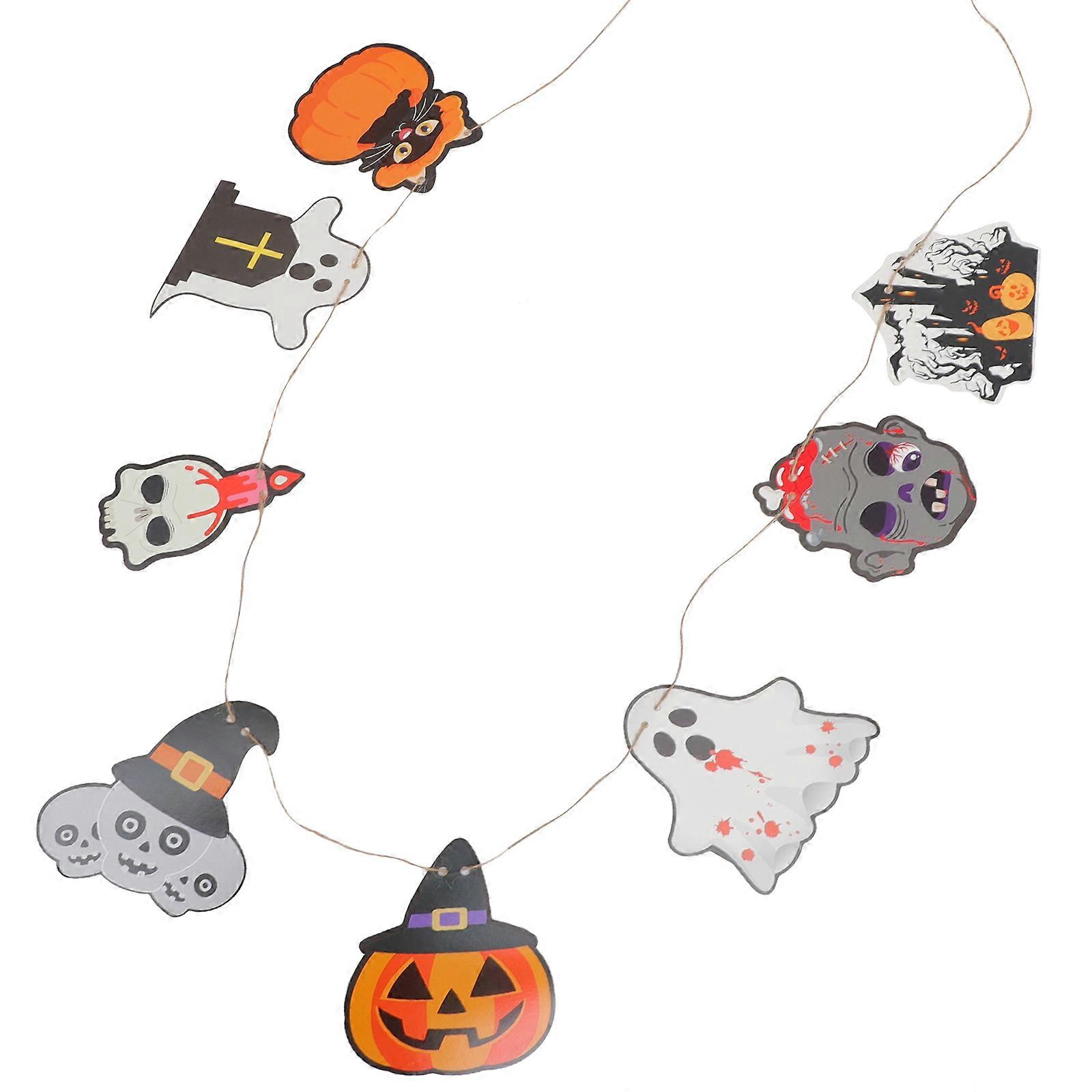 The paper bunting banner with Halloween elements design is a great decoration for Halloween. Excellent for doors, hallways, entryways, offices, living rooms, party, , etc. This paper banner, helps to create a pleasant party atmosphere. It also can be photo prop, great choice for you. Features -Color:Assorted Color -Material:Paper -Size:13.00X10.80X0.10cm/5.11X4.24X0.04in - This set of hanging banner with Halloween elements is perfect to create a fun Halloween party for you. - Nice decoration in Halloween masquerade party, home indoor, doorway, pub, office, shopping mall, mantel or wall. - This Halloween party banner is made of paper and with fine printing process, not easy to fade. - This banner is made of paper, light and thin, easy to carry, and can be easy to store when not in use. - Simple and creative Halloween themed design makes it perfect for party supplies and decoration. Package list: 1 × Set of Halloween Banner