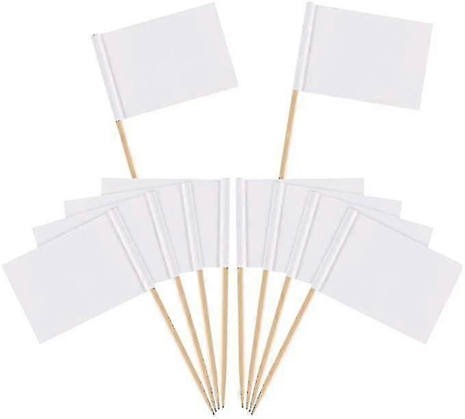 Toothpick Flags,100 Pieces White Bamboo Mini Flag Toothpick Flags for Party Cake Food Cheeseplate Appetizers