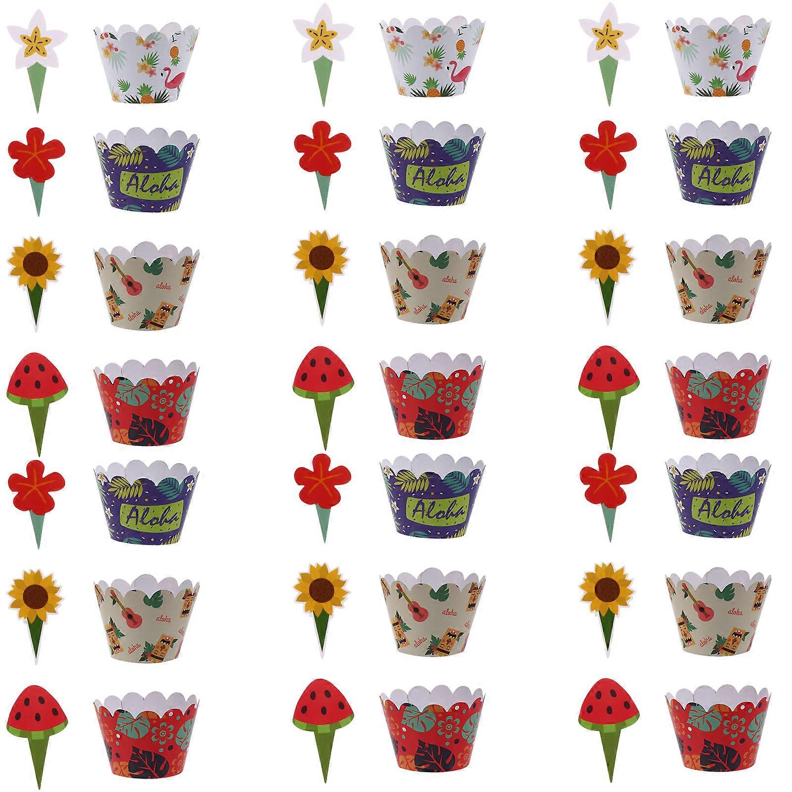 Birthday Party Cupcake Toppers Sets Colorful Paper Cake Toppers Cupcake Containers Party Supplies Decoration 24 Sets
