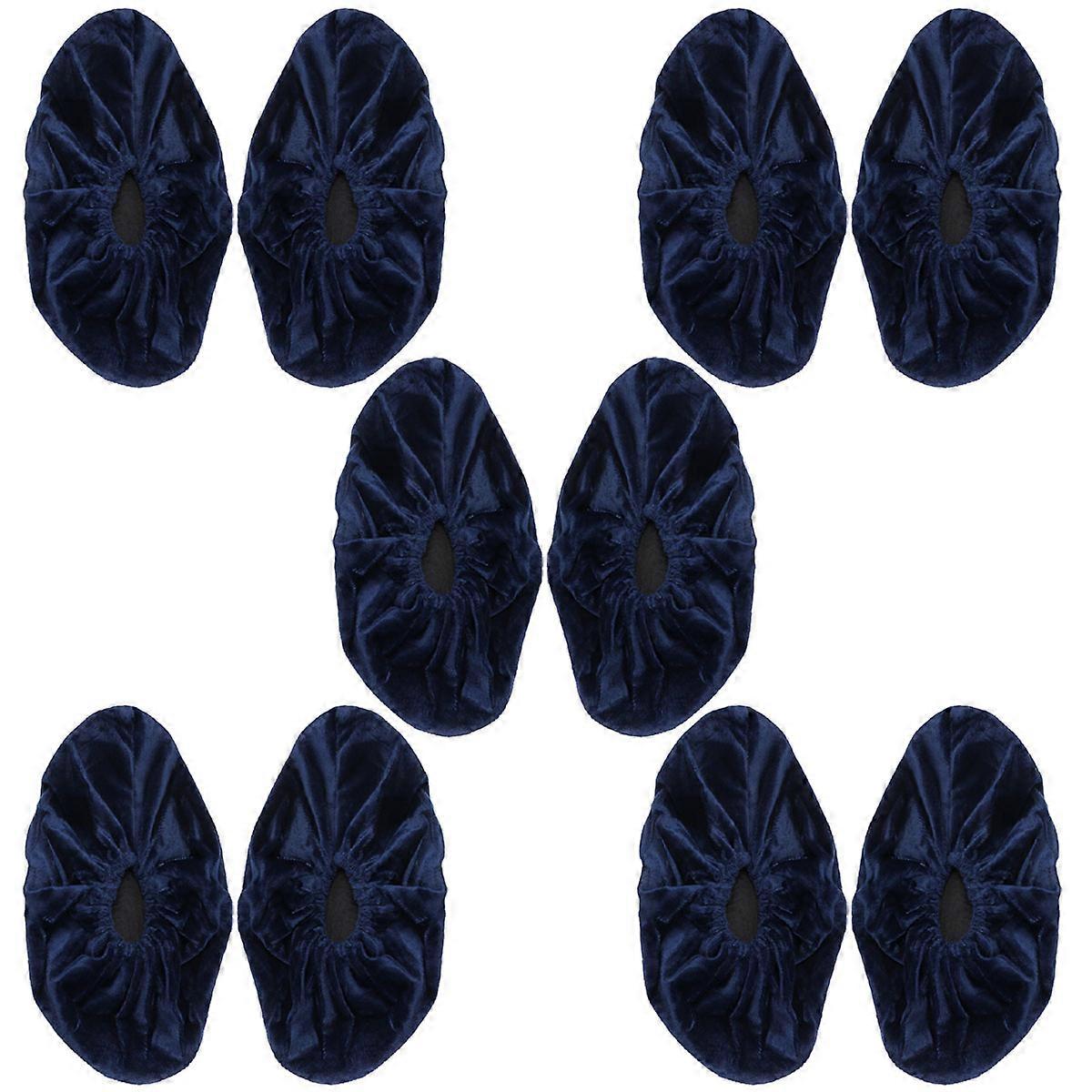 Waterproof Shoe Covers Flannelette Material Dark Blue Color Rainproof Wear-Resistant Foldable Easy to Clean 5 Pairs