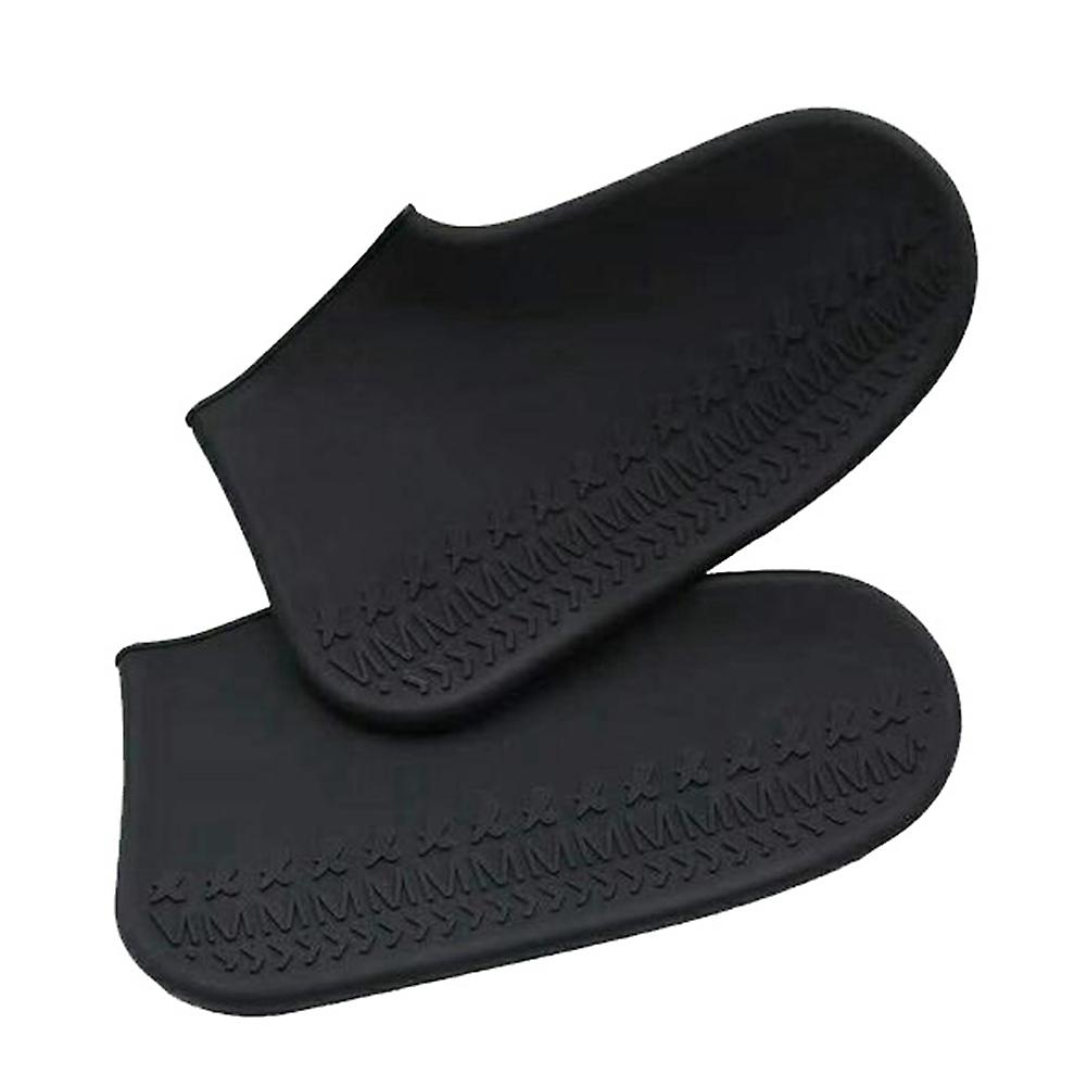 Silicone Waterproof Shoe Covers Reusable Rain Boot Protectors Non-slip Rain Overshoes (Black L)