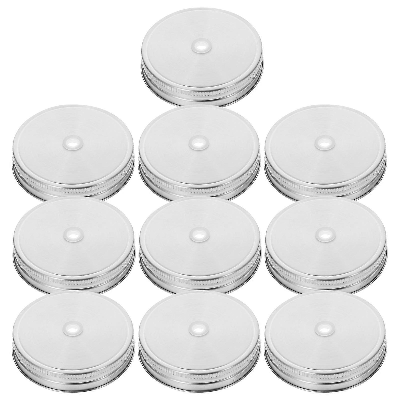 Jar Lids with Straw Hole Airtight Stainless Steel Can Lids for Mason Jars Everyday Use Silver 9x9x1.8cm Leak-Proof 10Pcs