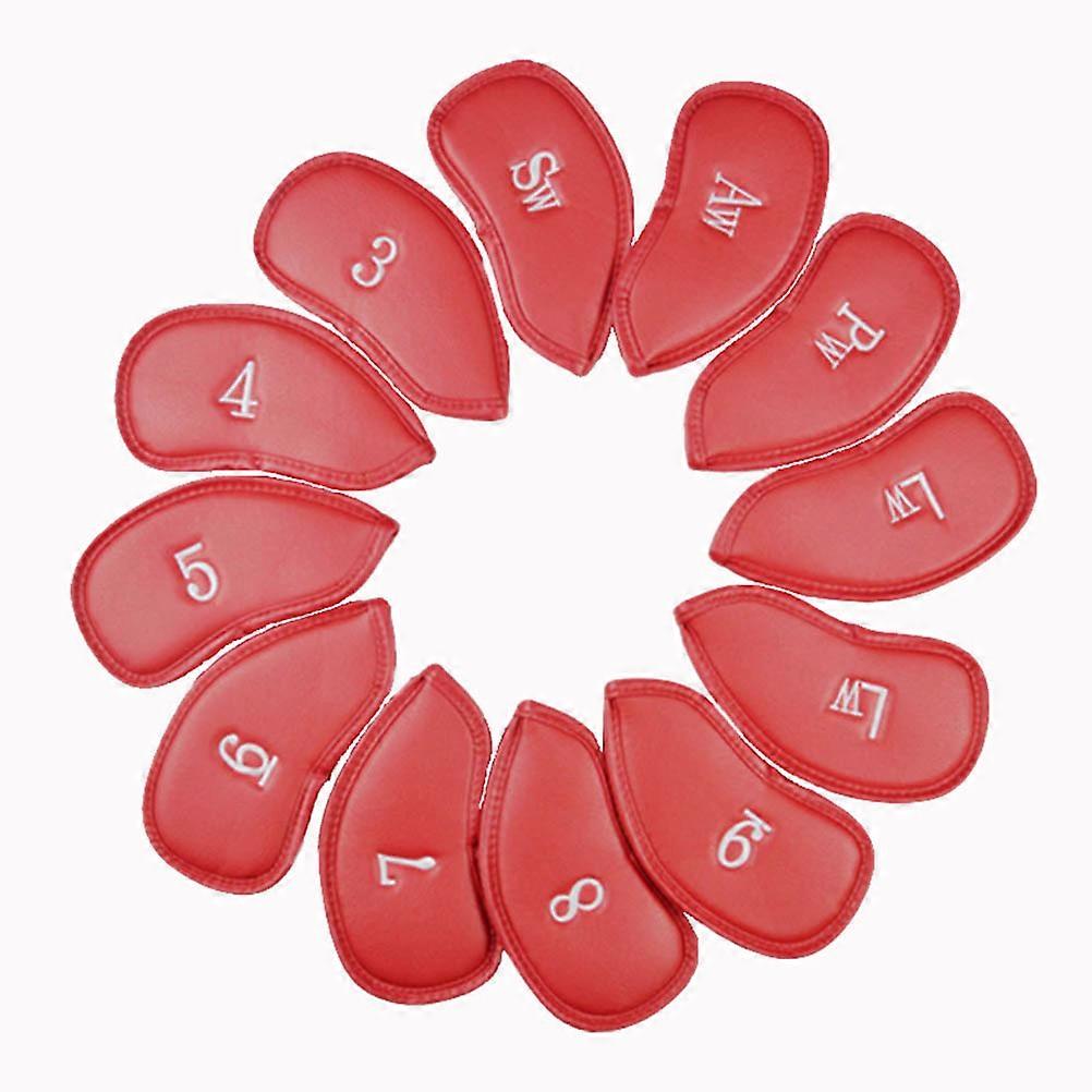 Golf Iron Protection Covers Synthetic Leather Headcovers Set For Outdoor Traveling Red 12Pcs
